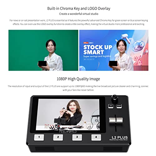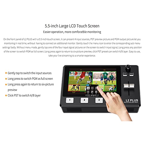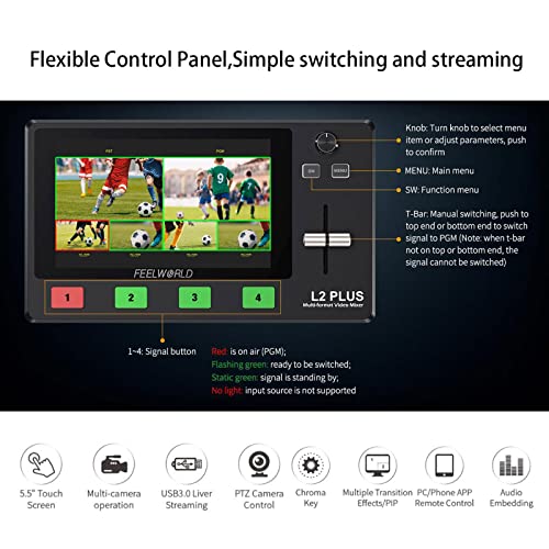 Feelworld - مفتاح مزج فيديو L2 بلس متعدد الكاميرات 5.5 بوصة شاشة تعمل باللمس LCD 4 × مدخلات HDMI تحكم بي تي زد مفتاح كروما USB 3.0 بث مباشر من فيل وورلد