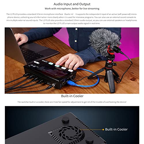 - شاشة لمس ال سي دي 5.5 انش: في الجزء الأمامي من L2 بلس مع شاشة لمس 5.5 بوصة، يمكنك مراقبة 4 مصادر إدخال، معاينة PST وصورة إخراج PGM في الوقت الفعلي دون الحاجة إلى توصيل شاشة إضافية.