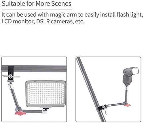 - 【الجمع بين الاستخدام مع الذراع السحرية】يمكن استخدامه مع الذراع السحري لتثبيت مصباح LED بسهولة وضوء الفلاش وشاشة LCD وكاميرات دي اس ال ار وما إلى ذلك.