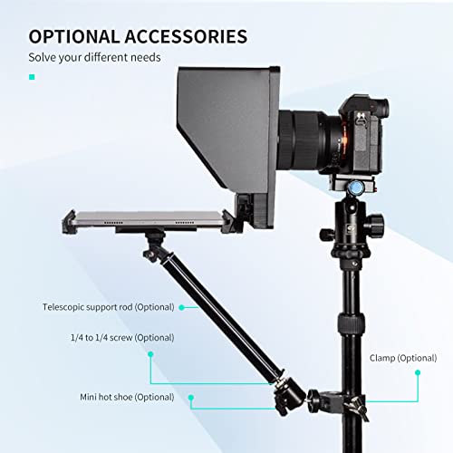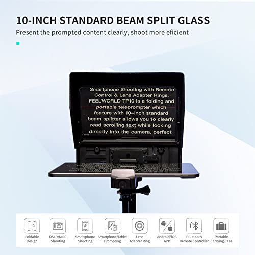 Feelworld - فيل وورلد جهاز تلقين تي بي 10 محمول وقابل للطي مقاس 10 انش يدعم حتى 11 انش للهواتف الذكية/التابلت لتصوير الهاتف الذكي دي اس ال ار مع جهاز تحكم عن بعد ومحول عدسة + شنطة حمل