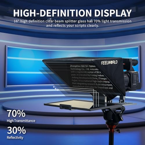 • 【نص واضح ونقي】 يتميز الزجاج الشفاف عالي الدقة مقاس 16 بوصة بنفاذية ضوء بنسبة 70% مما يوفر نصًا واضحًا ونقيًا حتى من مسافة بعيدة. وهذا يجعل من السهل قراءة النص الخاص بك أثناء تسجيل مقاطع الفيديو أو إلقاء الخطب، مما يضمن أداءً سلسًا واحترافيًا.