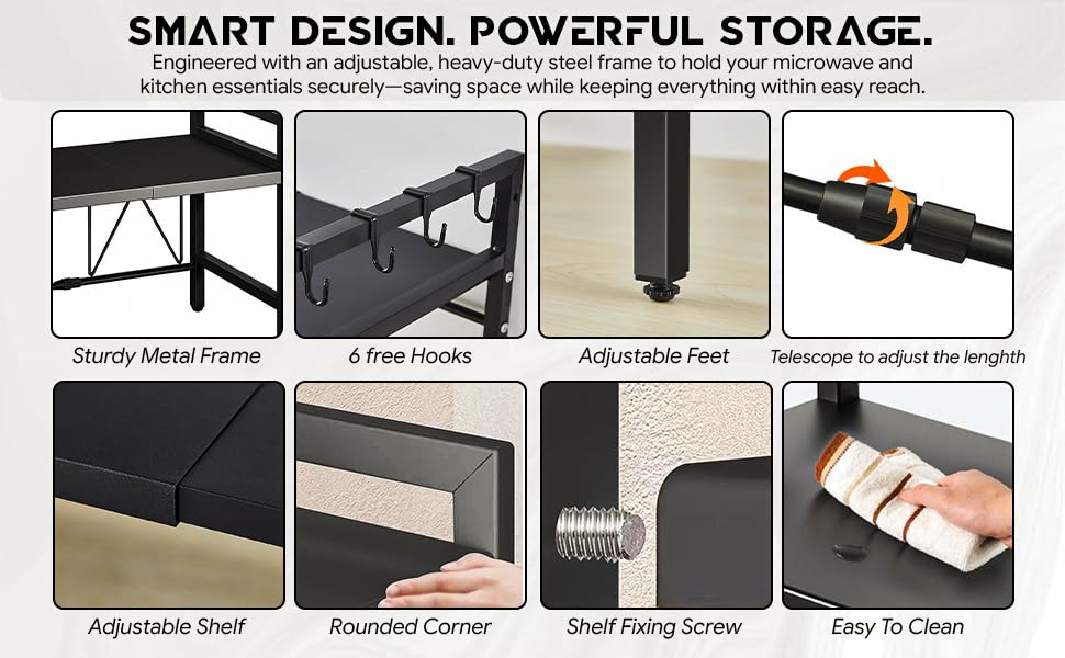 - 【سهل التركيب】رف فرن الميكروويف سهل التركيب، ويمكنك إكمال التركيب في 10 دقائق فقط! يأتي مع تعليمات وأدوات باللغة الإنجليزية. في حالة فشل المنتج. الأبعاد: 17~25 (طول) × 14 (عرض) × 16.5 (ارتفاع) انش.
