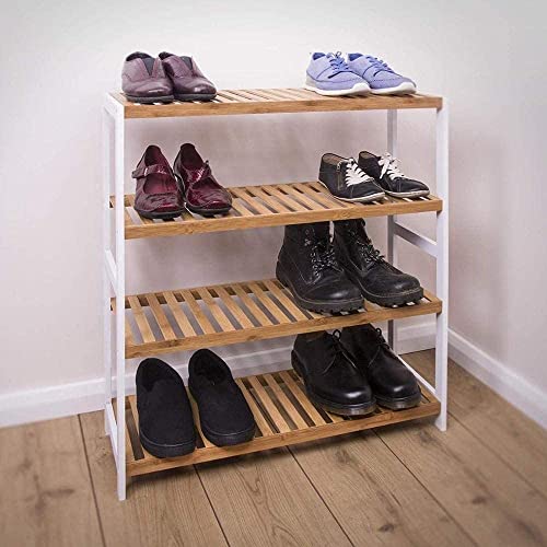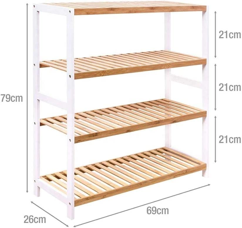 FEFE - فيفي رف احذية من خشب الخيزران الطبيعي مكون من 4 طبقات لتنظيم اثاث الرواق، 16 زوج من الاحذية مقاس 79 × 69 × 26 سم، مثالي للممر وغرفة المعيشة والحمام وغرفة النوم والرواق