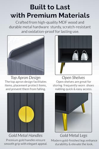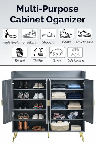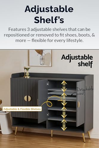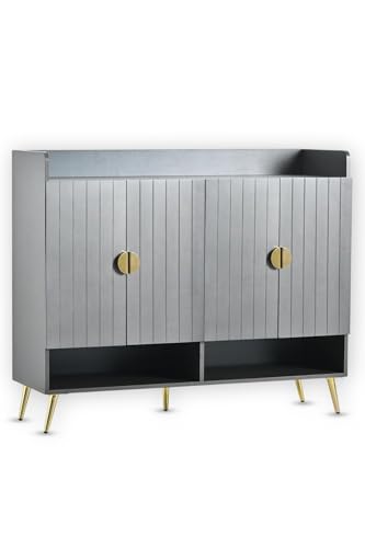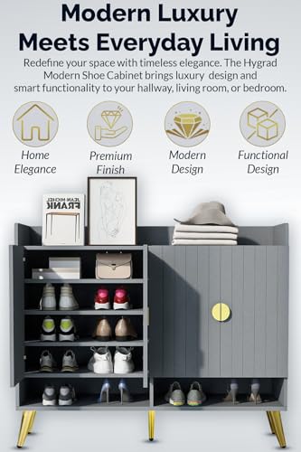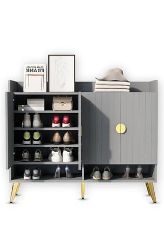 FEFE - فيفي رف منظم احذية عصري مع باب، وحدة تخزين حامل للمدخل والممر والخزانة وغرفة المعيشة وخزانة سونوما من الخشب الهندسي (رمادي)
