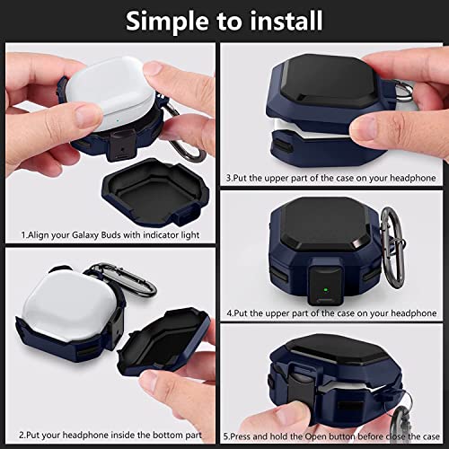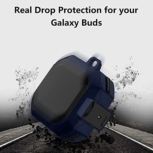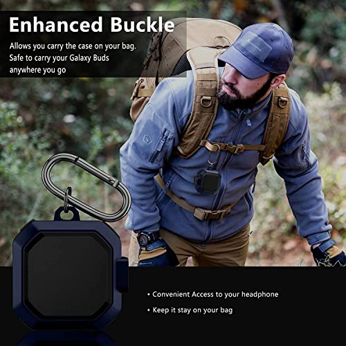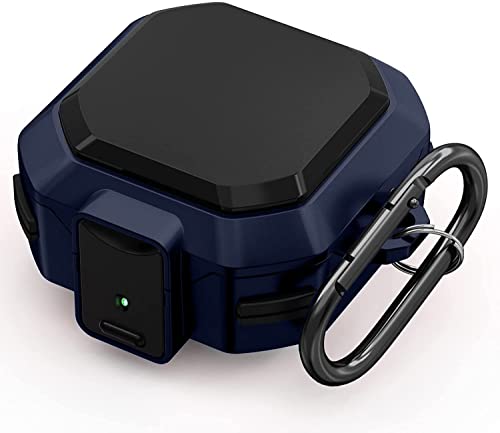 Fegishilly - جراب متين مقاوم للصدمات بتصميم خارجي غير لامع من فيجشيلي لسماعات جالاكسي بودز 2 برو 2021 لايف 2020 مزود بقفل امان ويوفر تغطية كاملة اسود وازرق رأس
