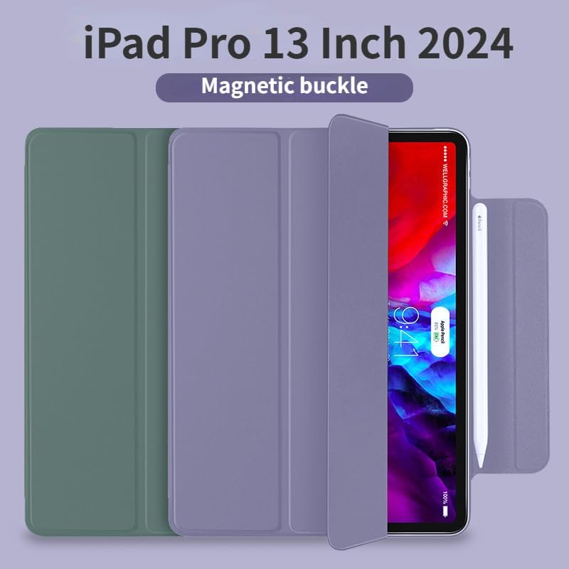 Fegishilly - جراب حماية من فيجيشيلي، جراب حماية بتصميم رفيع ثلاثي الطي مع مشبك مغناطيس، بخاصية التشغيل/السكون التلقائي، حماية متينة متوافق مع آي باد برو 13 بوصة 2024 (M4، الجيل السابع) (أسود)