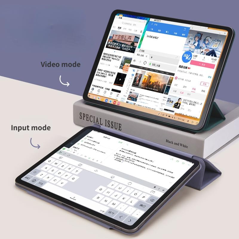 - جراب ثلاثي الطيات بمسند: جراب الحماية هذا بغطاء أمامي ثلاثي الطي يوفر وضعين للعرض لتلبية احتياجات المشاهدة والكتابة