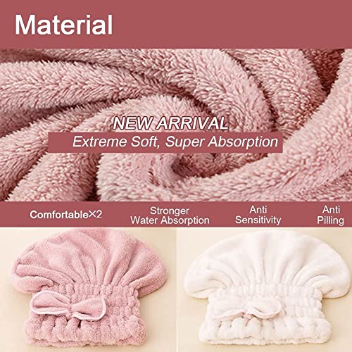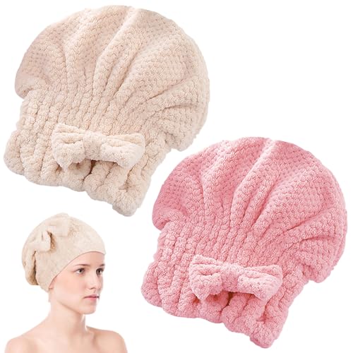 Feibety - فوط تجفيف شعر من المايكروفايبر فيبيتي قبعة فوطة فائقة الامتصاص لفافة رأس سريعة الجفاف مع استحمام بعقدة فيونكة للشاطئ والحمام وصالونات التجميل للشعر المجعد والطويل والكثيف قطعتين قماش