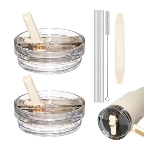 فكرة - غطاء بقشة قلاب اصلي مقاوم للتسرب 40 اونصة من فيكرا، غطاء بديل متوافق مع ستانلي كوينشر H2.0 وبروتور تابل بلون دقيق 40 اونصة (لون كريمي)
