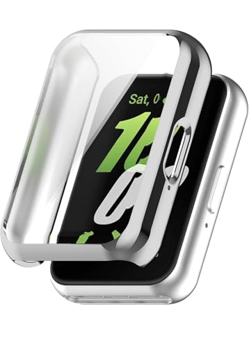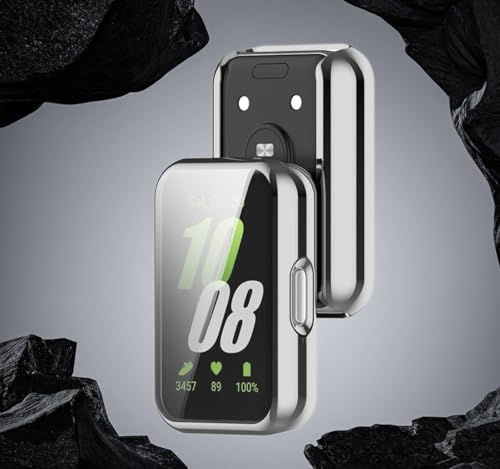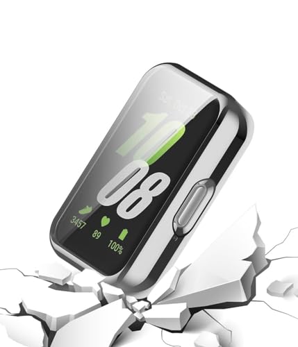 فكرة - جراب حماية ناعم من البولي يوريثين المقاوم للحرارة مضاد للصدمات بشاشة حماية مدمجة بتصميم رفيع يوفر حماية كاملة لساعة سامسونج جالاكسي فيت 3 من فكرة (لون فضي)