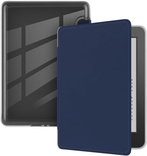 فكرة - حافظة لجهاز كيندل بيبر وايت 7 انش (الجيل 12 - اصدار 2024)، تناسب اصدار كيندل كولور سوفت بيبر وايت المميز من الجلد الصناعي خفيف الوزن وغطاء خلفي اكريليك شفاف من البولي كربونات، خاصية النوم/الاستيقاظ