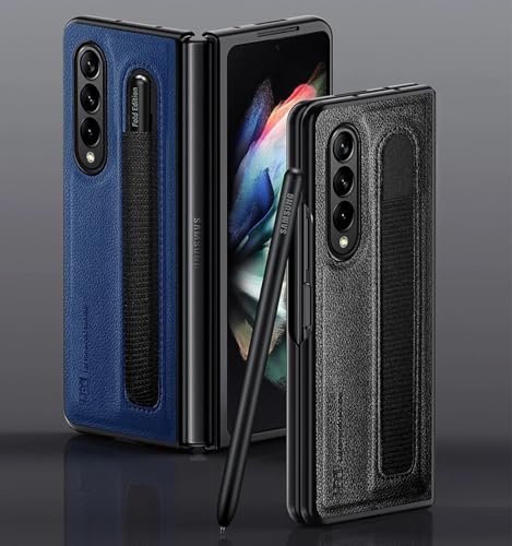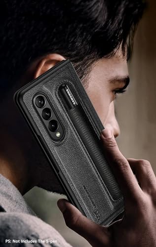 فكرة - جراب حماية رفيع للغاية ومتين من الجلد الصناعي + غطاء صلب البولي كربونات فكرة لموبايل سامسونج جالاكسي Z فولد 4 شبكة الجيل الخامس 5G تصميم كلاسيكي