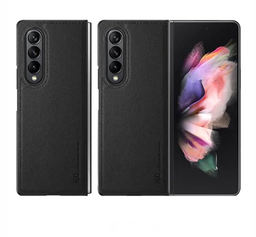 فكرة - جراب لموبايل سامسونج جالاكسي زد فولد 4 شبكة الجيل الخامس 5G مصنوع من جلد صناعي وغلاف صلب البولي كربونات رفيع جدا ومتين فكرة لون أسود كلاسيك مصد