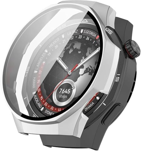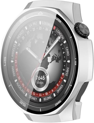 فكرة - جراب مع شاشة حماية زجاج مقوى مضادة للخدش من فكرة، متوافق مع ساعة موبايل هواوي GT5 برو 46 ملم (فضي)