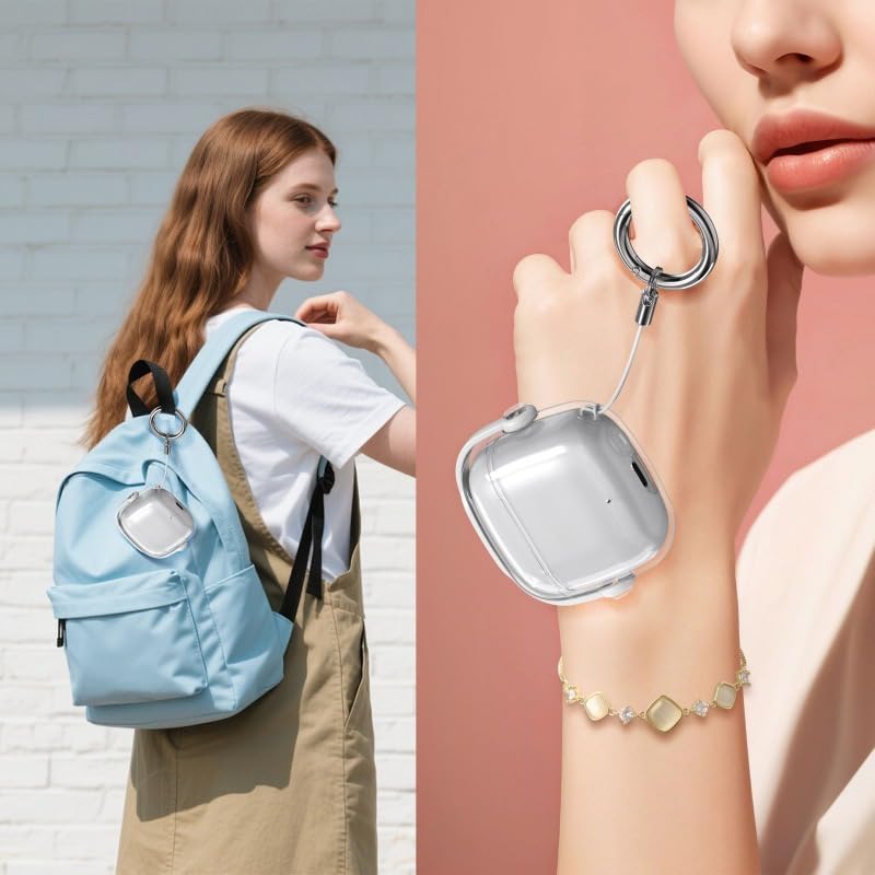 فكرة - حافظة شفافة ناعمة من فكرا لسماعات فري بودز اس اي 3 / اس اي 2 مع مشبك حبل قصير، غطاء صندوق شحن لسماعات الاذن فري بودز اس اي 3/ اس اي 2 (شفاف)
