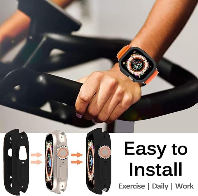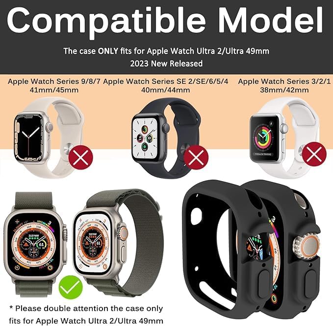 - جراب حماية رفيع ممتص للصدمات ومضاد للخدش من البولي يوريثين الحراري لساعة ابل سلسلة 7 8 9 مقاس 45 ملم من فكرة (أسود، 49 ملم)