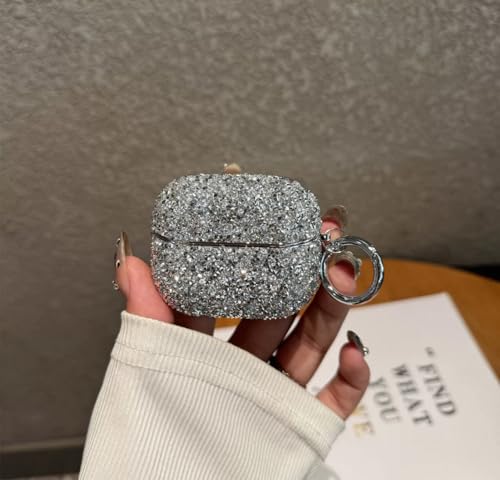 فكرة - حافظة حماية متوافقة مع سماعات سامسونج جالاكسي بادز 3 وجالاكسي بادز 3 برو بغطاء لامع كريستالي جليتر مع حبل قصير (لون فضي - F) من فكرة