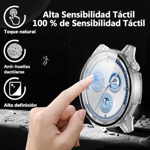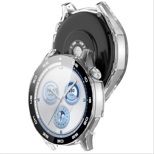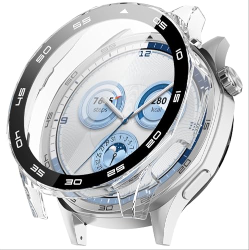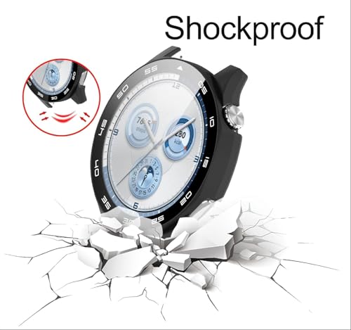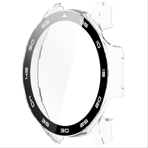 فكرة - جراب حماية من البولي كربونات بشاشة حماية من الزجاج المقوى مضاد للخدش من فكرة، متوافق مع ساعة هواوي GT5 مقاس 46 ملم (شفافة وبمقياس)