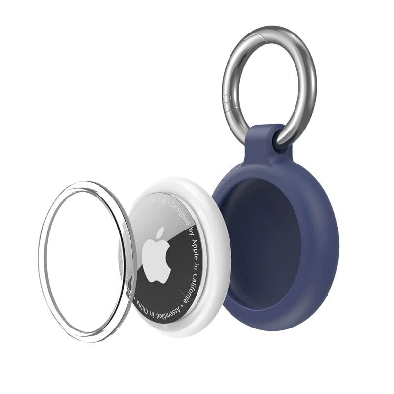 فكرة - جراب حماية مع سلسلة مفاتيح بتثبيت محكم وغطاء حماية من مادة البولي يوريثين المقاوم للحرارة لجهاز آبل ايرتاج، للاستخدام مع المفاتيح والشنط وشنط السفر وطوق الحيوانات الأليفة من فكرة (لون أزرق)