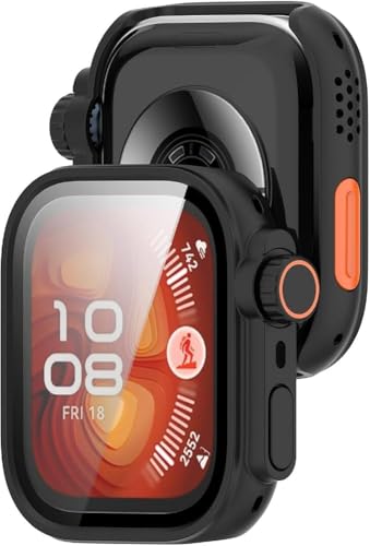 فكرة - جراب حماية لساعة هواوي واتش فيت 4 برو إصدار 2025 مع شاشة حماية، [ يبدو مثل جراب ساعة اي ووتش الترا]، جراب حماية بتصميم فريد مع زجاج مقوى مدمج لساعة هواوي واتش فيت 4 برو من فكرة (أسود)