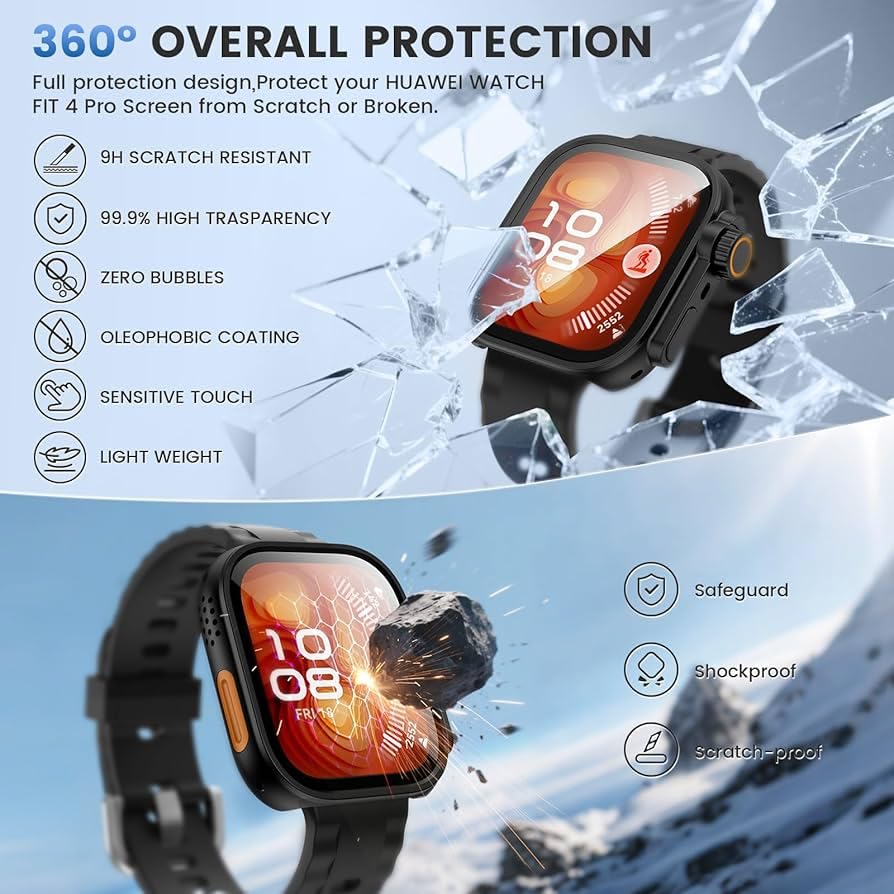- 【الطراز المتوافق】ساعة هواوي فيت 4 برو 2025. تصميم فريد، مثل أحدث طراز (ساعة ابل الترا)، لجراب ساعة هواوي فيت 4 برو مع شاشة حماية من الزجاج المقوى، يسمح بالتركيب السريع والسهل، لا حاجة لإزالة سوار الساعة، يمكنك تركيبه وإزالته مباشرة.