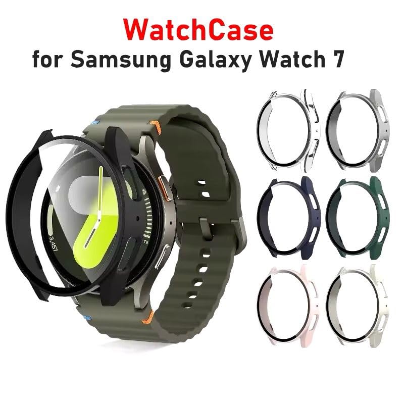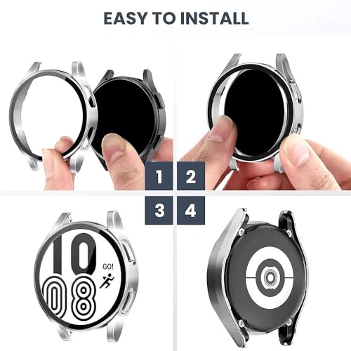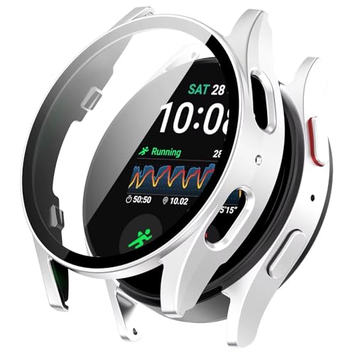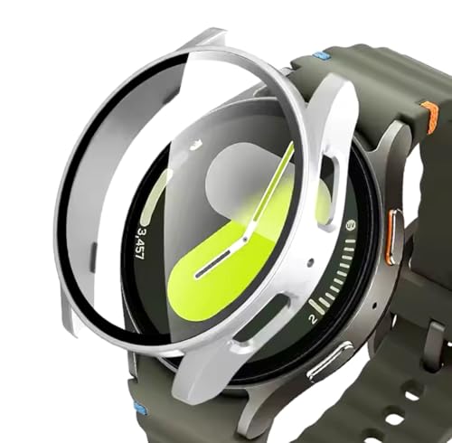 فكرة - جراب بشاشة حماية للساعة من فكرة البولي كربونات الصلبة والزجاج المقوى لساعة سامسونج جالاكسي 7 مقاس 44 ملم مضاد للانزلاق ورفيع للغاية ومقاوم للخدش فضي