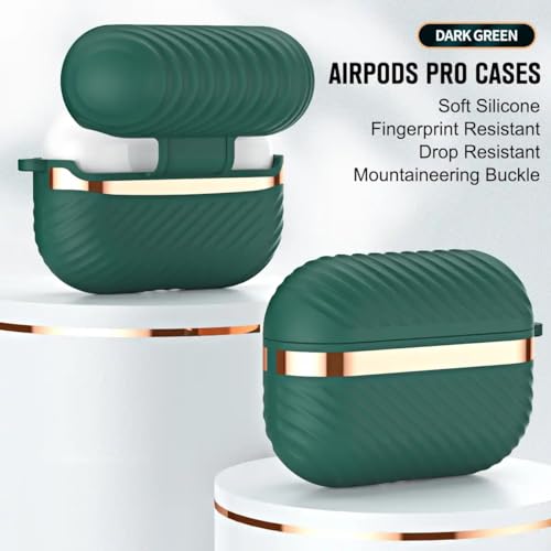فكرة - جراب حماية فاخر من السيليكون بشريط كروم وخطاف معدني فكرة لسماعات ابل ايربودز برو - 2 اللاسلكية اخضر داكن