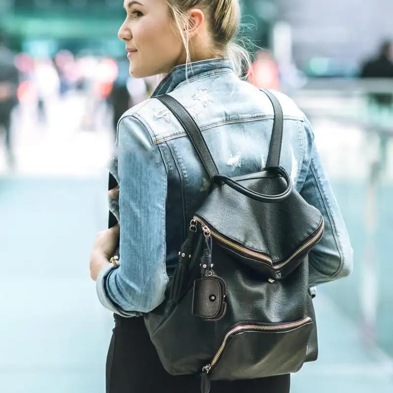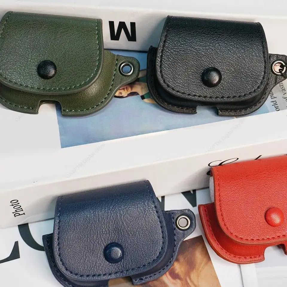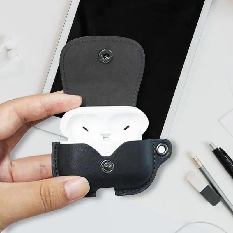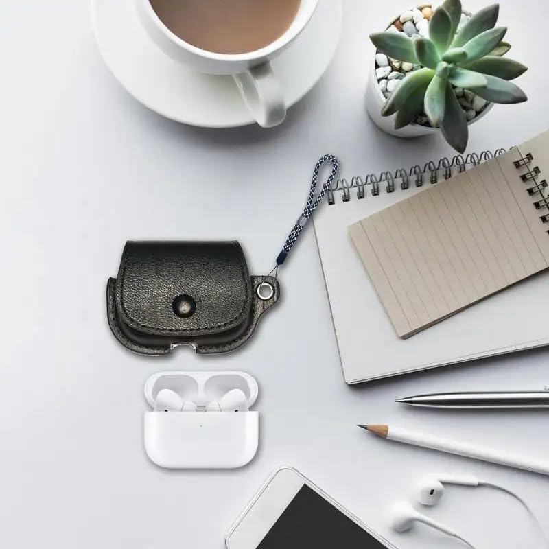 فكرة - جراب حماية من الجلد الصناعي فكرا متوافق مع سماعات ابل ايربودز برو 2 بابزيم وازرار وغطاء لاسلكي سلسلة مفاتيح اسود جلد صناعي