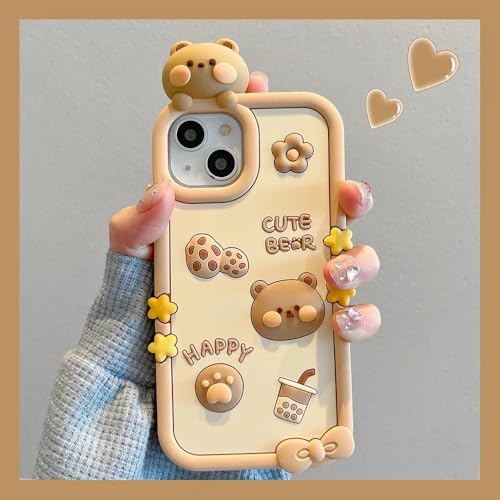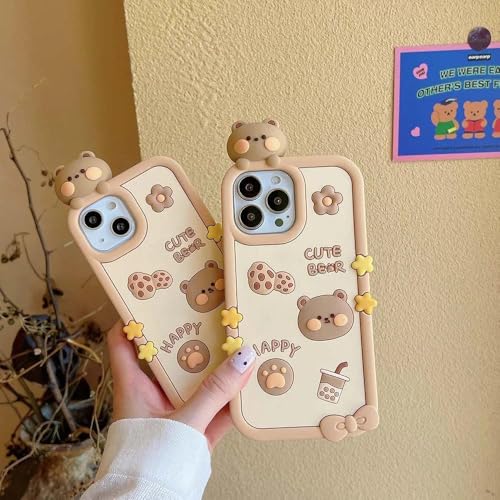 فكرة - جراب حماية سيليكون بطابع حلوى ودب لطيف ثلاثي أبعاد من فكرة لآيفون 15 برو ماكس|15 برو|15|14 برو ماكس|14 برو|14/13|13 برو ماكس|13 برو|12 برو ماكس|12/12 برو|11 برو ماكس|11 برو/11 (دب لطيف، 15 برو ماكس)