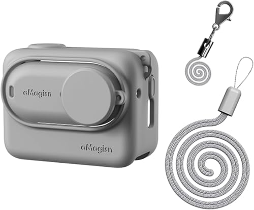 فكرة - جراب حماية من السيليكون فكرا لكاميرا انستا 360 جو 3 مع غطاء عدسة كاميرا منفصل واقي مضاد للخدش اكشن حبل قصير رمادي