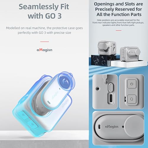- حماية شاملة: يوفر غطاء السيليكون لجهاز انستا 360 جو 3 حلاً شاملاً لحماية جهازك. مصمم خصيصًا لكاميرا انستا 360 جو 3 مع الملحقات، ويوفر حماية شاملة لكاميرا انستا 360 جو 3 وعلبة الحركة. يتكون من جزأين، أحدهما للوحدة الرئيسية وغطاء واحد قابل للفصل لوحدة عدسة الكاميرا. وهذا يضمن حماية كلا المكونين من انستا 360 جو 3 بشكل جيد من الخدوش والاصطدامات والغبار وحتى أضرار المياه.