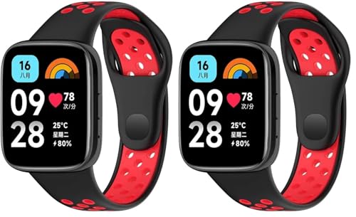 فكرة - سوار سيليكون متوافق مع ساعة ريدمي ووتش 3 لايت/اكتيف، سوار معصم بديل سريع التغيير من فكرة (أسود وأحمر (اس بي)) (2/ العبوة)