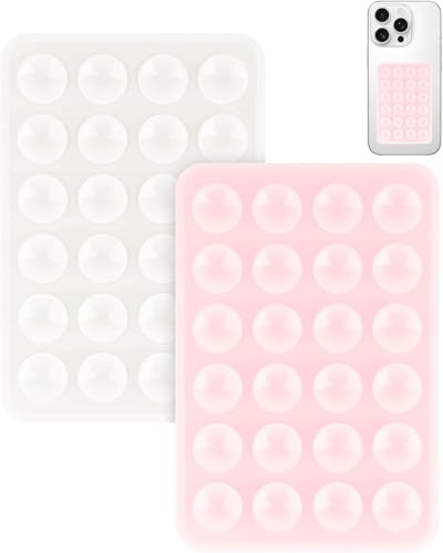 فكرة - حامل موبايل سيليكون بالشفط، قاعدة لاصقة للموبايلات للاستخدام بدون يد للتصوير والسيلفي، إكسسوارات موبايل من فكرة، عبوة من 2 قطعة، لون بينك