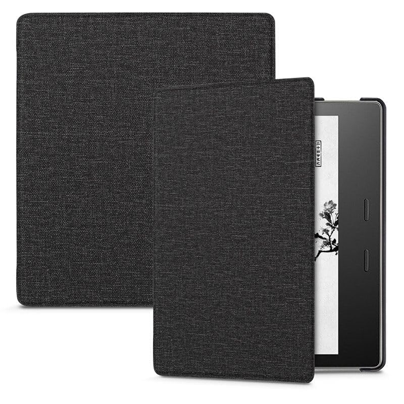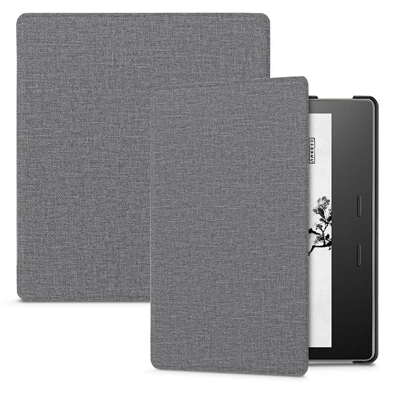 فكرة - جراب رفيع جلد صناعي لجهاز كيندل اويسيز 7 بوصة الجيل 10 إصدار 2019 والجيل 9 2017 مع خاصية التشغيل -الإيقاف التلقائي لون رمادي