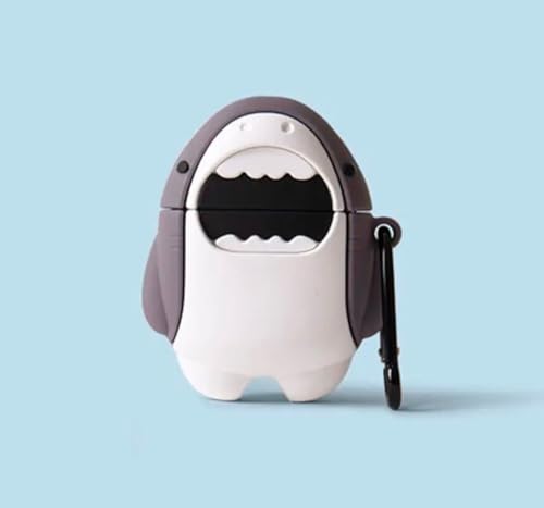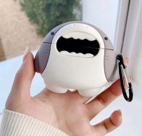 فكرة - جراب سيليكون ناعم مضاد للصدمات لسماعات آبل ايربودز برو 2، بتصميم كرتوني ثلاثي الأبعاد لطيف ومبتكر مع سلسلة مفاتيح 2 من فكرة ستور (سمكة قرش)، متعدد الألوان