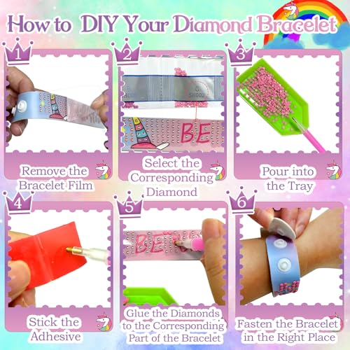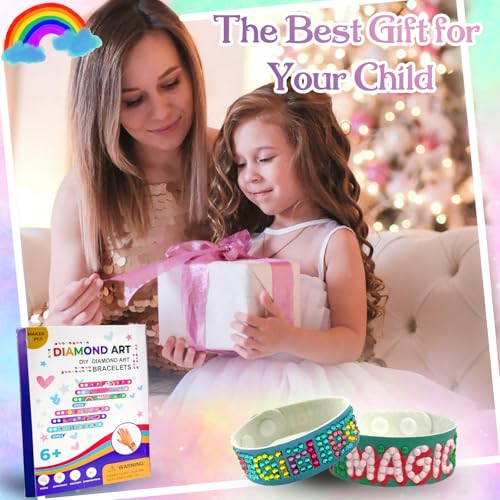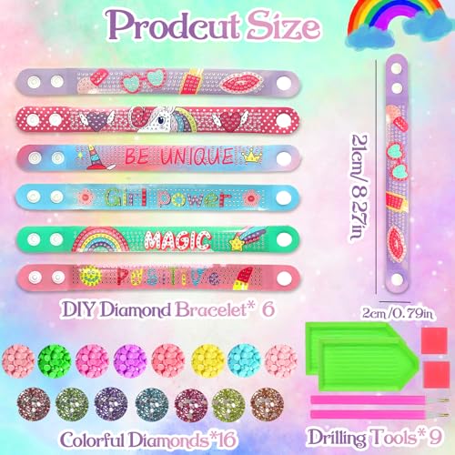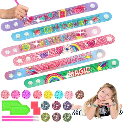 Felicify - أساور فنية للرسم بحبات الألماس للأطفال، أساور للأعمال اليدوية والفن الماسي للأولاد والبنات من فيليسيفي، 6 قطع، A