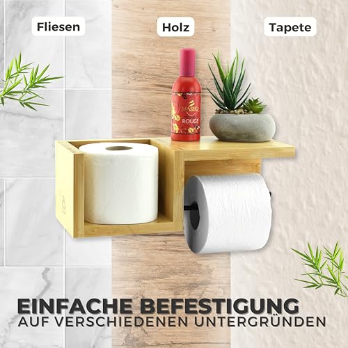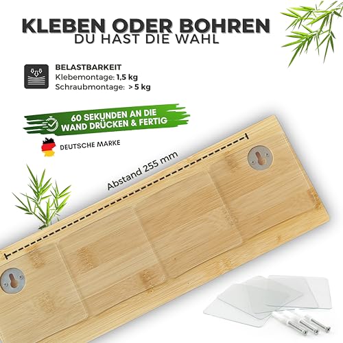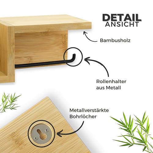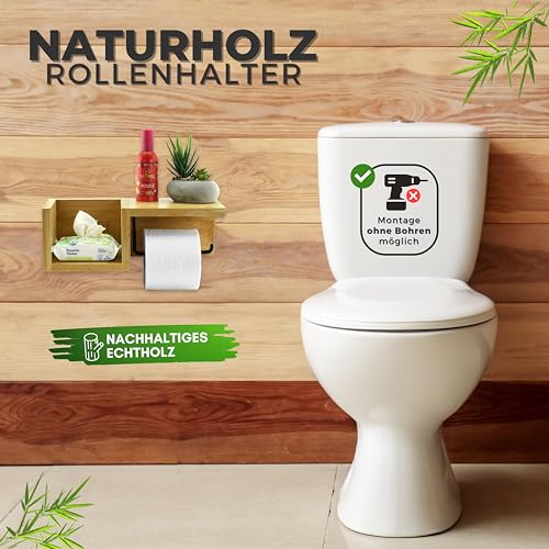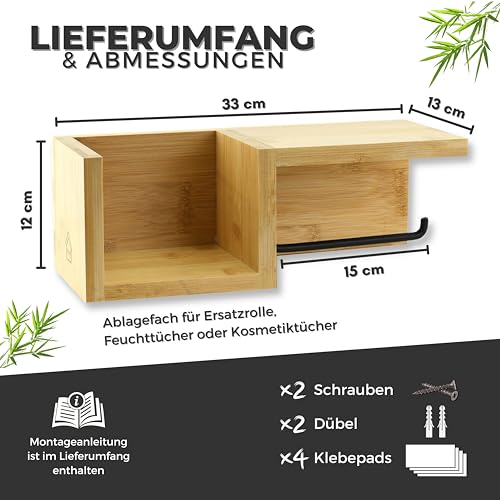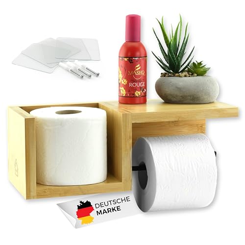 Felino - حامل مناديل حمام من خشب الخيزران من فيلينو®، حامل مناديل حمام ذاتي اللصق بدون ثقب مع رف أكسسوارات حمام عصرية