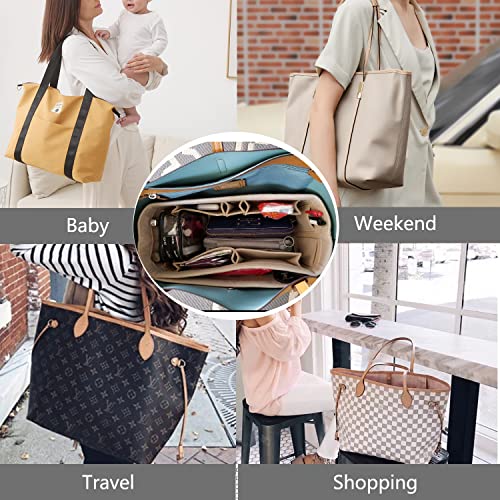 Lmeison - منظم شنط من لميسون، تصميم عملي، لون بيج، مصنوع من اللباد، محمول وخفيف الوزن وقابل للتعديل، يناسب شنط توت ونيفرفول