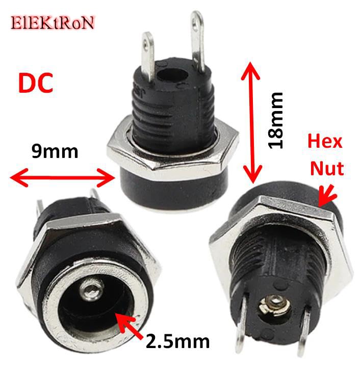 Generic - مقبس شحن بمنفذ طاقة تيار مستمر انثى DC-022B 3 امبير 12 فولت لمصدر 5.5 × 2.5 ملم DC022B موصل اس ام دي