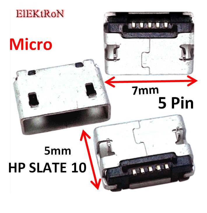 Generic - عدد قطعتين من سوكت شحن Female Port 5P SMD SMT Micro USB 2.0 Charging Socket Jack B Type 5 Pin Mini Connector Repair 10 HD Replacement Adapter