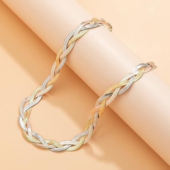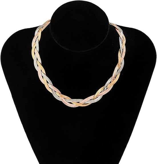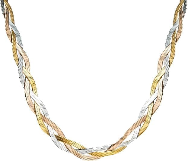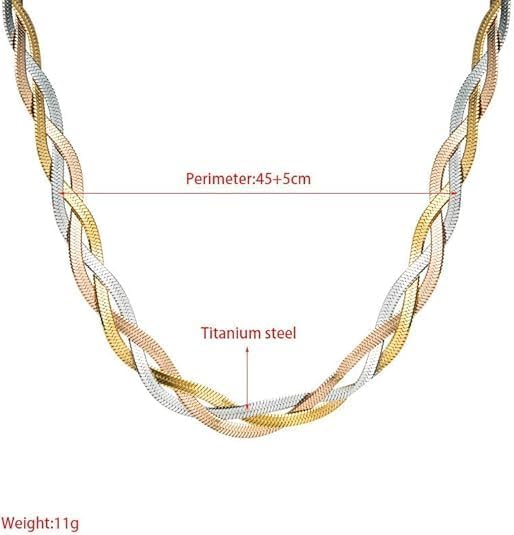 Generic - قلادة سلسلة مضفرة من الفولاذ المقاوم للصدأ ثلاثية الألوان من فيمينين جوليري - 3 ألوان متعرجة 45 سم + 5 سم موسع للنساء، هدايا العيد وعيد الأم