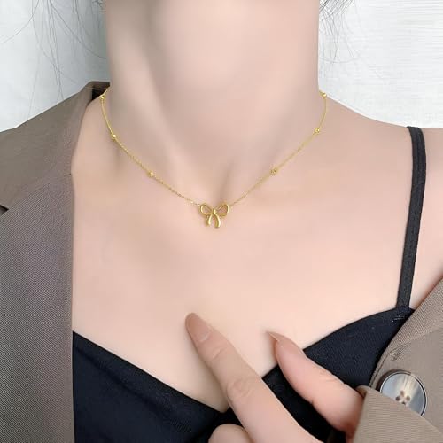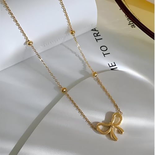 Generic - قلادة نسائية - قلادة فيونكة من الستانلس ستيل 316L ترمز إلى الأناقة والنقاء، مصنوعة بشكل مثالي للنساء اللواتي يقدرن الجمال الرقيق والجودة المتينة في المجوهرات اليومية الأنيقة