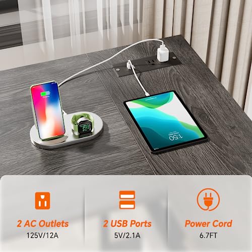 - مكتب على شكل حرف L مع منافذ: يتميز المكتب ذو المخرج بمنفذي طاقة ومنفذي USB لشحن جميع أجهزتك الإلكترونية بشكل مريح. تصميم مكتب على شكل حرف L يجعله مكتب كمبيوتر صغير مثالي للمساحات الصغيرة كمكتب منزلي لتلبية احتياجاتك.