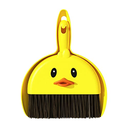 Spaceshoop - مجموعة مكنسة وجاروف من فيمون، مكنسة يدوية صغيرة بشعيرات ناعمة، قطعة لتنظيف لوحة المفاتيح برسوم كرتونية وسطح المكتب ومن أدوات المطبخ والمكتب والسيارة ومخلفات الحيوانات الأليفة