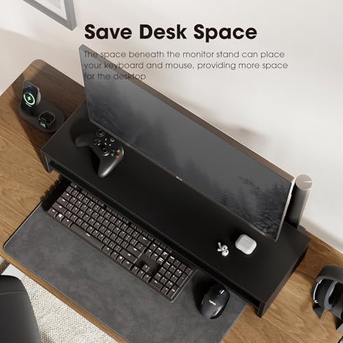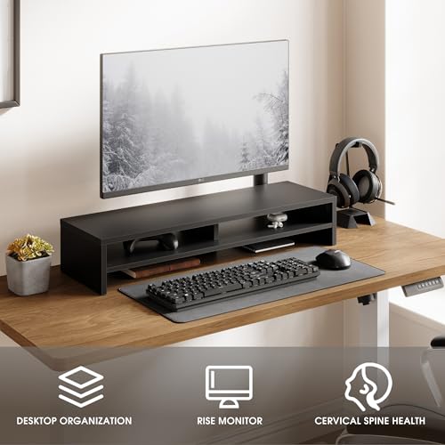 Fenge - فينج حامل شاشة كبير من طبقتين مع مساحة تخزين للكيبورد، ملحقات المكتب، لوازم المكتب المنزلية (اسود)