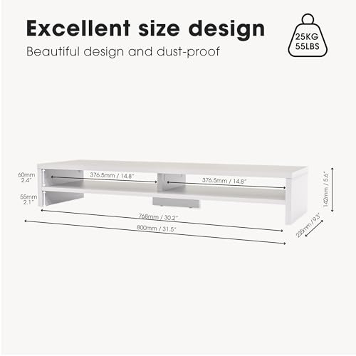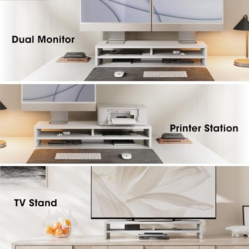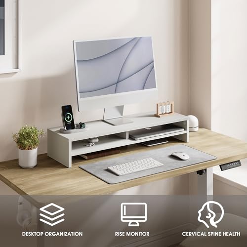 Fenge - فينج حامل شاشة مزدوج من طبقتين للكمبيوتر واللاب توب والطابعة والتلفزيون ومنظم المكتب بسعة تحميل 25 كجم، 90 × 23.5 × 14.2 سم (ابيض)