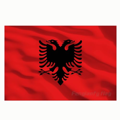 Fenglanfy - علم البانيا من فينجلانفي مقاس 3×5 قدم/90×150 سم بوليستر مع فتحتين معدنيتين وخياطة مزدوجة.