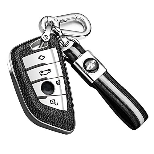 FENGRUISI - فينجروسي حافظة مفتاح سيارة من جلد البولي يوريثين الحراري الناعم على شكل شفرة متطورة لمفتاح بي ام دبليو الذكي الجديد لسيارة 2014-2021 2 3 5 6 7 سيريز X1 X3 X4 X5 X6 X7 فضي فينجرويزي
