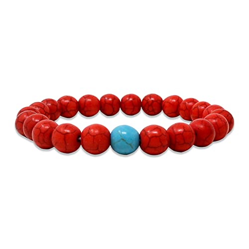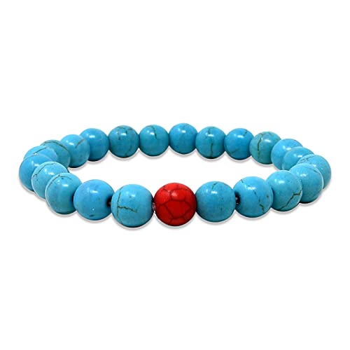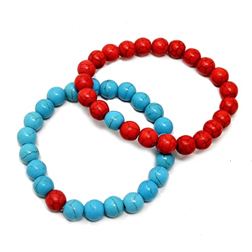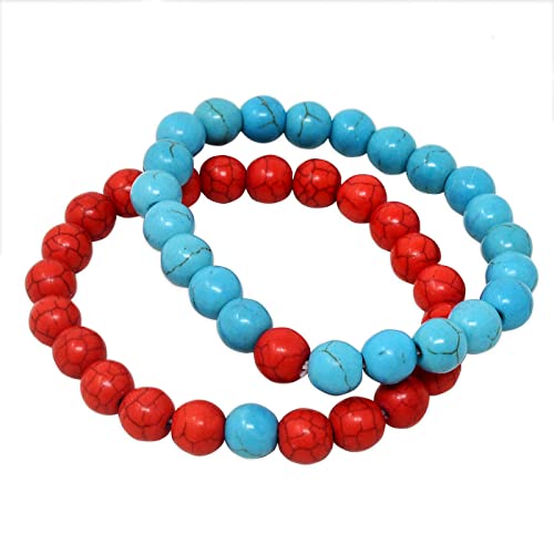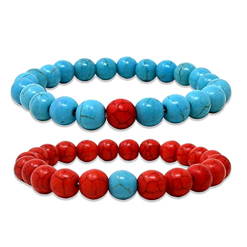 fengshuisale - مجموعة اساور كلاسيكية من الاحجار الطبيعية للرجال والنساء للاصدقاء المقربين W3832 (ازرق بينك) من قطعتين