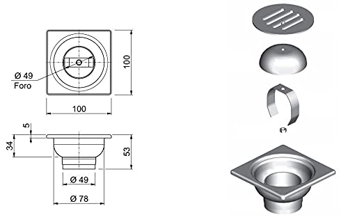 Ferplast - غطاء بيبه شاور مربع 10 سم استانليس مقاوم للصدأ بعازل مائي - 402/50